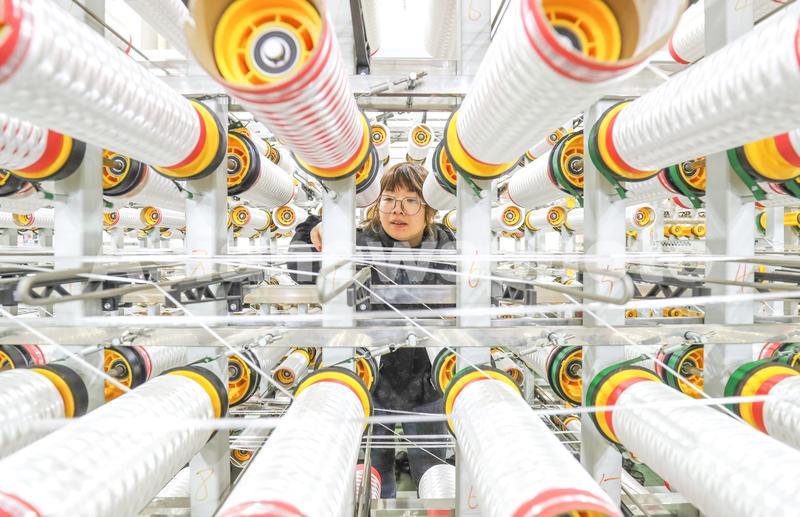 2023年1月27日,位于浙江省湖州市德清县雷甸镇的浙江科博立新材料有限公司智能化车间,工人在赶制出口海外的防弹防护复合材料。新春伊始,该企业开足马力,组织工人加紧赶制出口韩国、美国、欧洲等国家的订单,满足国际市场供应,力争实现首季“开门红”。
