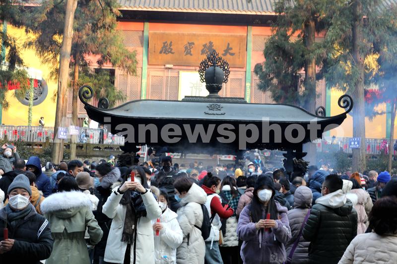 2023年1月25日,正月初四,杭州灵隐景区人头攒动,众多市民、游客纷纷前来为新年祈福。春节期间灵隐寺免收门票(香花券),为了确保安全有序,实行预约制度,凭预约码进入寺院。
