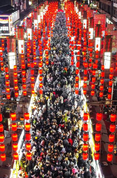 图片说明:2023年1月25日晚,游客在河南省洛阳市老城区古城历史文化街区游玩消费,文旅融合增添城市活力。