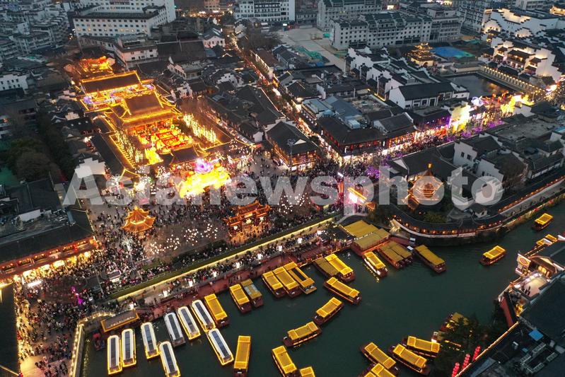 图片说明:2023年1月26日晚,人们在南京夫子庙景区参观游览。