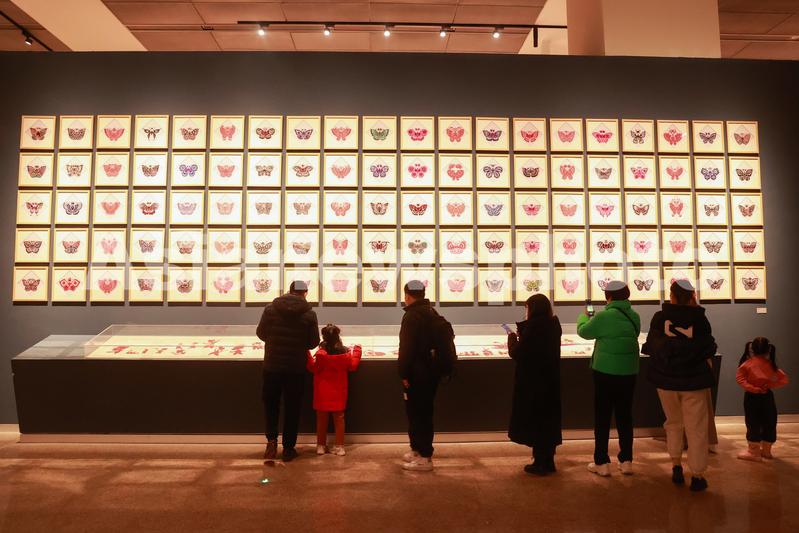 2023年1月29日,观众在观赏剪纸作品《百蝶图》。