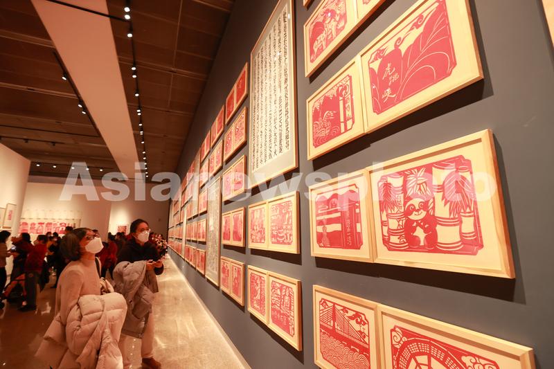 2023年1月29日,观众驻足观赏剪纸作品。