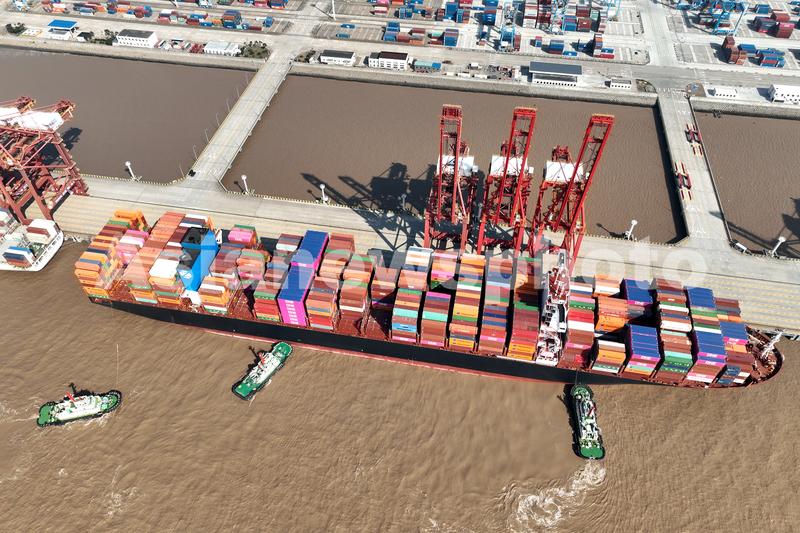2023年1月28日,海洋网联宙斯(ZEUS LUMOS)轮又在三艘拖轮的护航下靠泊宁波舟山港金塘港区大浦口集装箱码头。