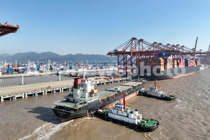 2023年1月28日,宁波舟山港金塘港区大浦口集装箱码头,凯帕伊萨(KYPARISSIA)轮完成1273标箱的作业后刚刚离开2号码头,海洋网联宙斯(ZEUS LUMOS)轮又在三艘拖轮的护航下靠泊,并将进行4209.5标箱的装卸作业。而在1号码头的东方釜山(OOCL BUSAN)轮解缆离港后,永盛158轮又靠了上来。大浦口国际集装箱码头这一海上丝绸之路,船来船往,一派繁忙景象。海关数据显示,2023年春节七天大浦口码头集装箱吞吐量3.58万标箱,比去年春节同期增长72.36%。