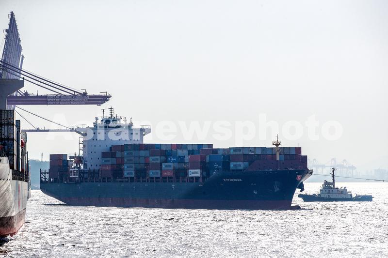 2023年1月28日,宁波舟山港金塘港区大浦口集装箱码头,凯帕伊萨(KYPARISSIA)轮完成1273标箱的作业后离开2号码头。