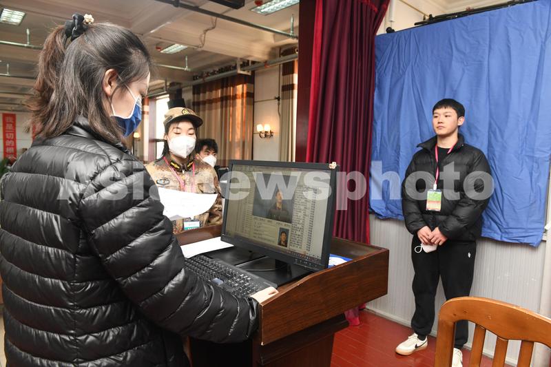 图片说明:2023年1月30日,河北石家庄新乐市人武部组织应征青年在该市医院体检中心进行体检信息录入。