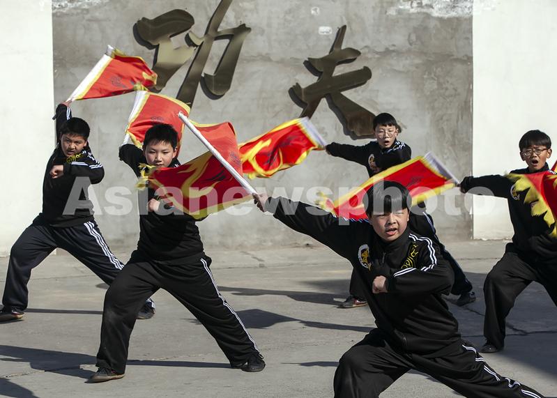 图片说明:1月31日,河南省焦作市博爱县体育馆,耀扬武术馆的队员们在进行武术比赛。
