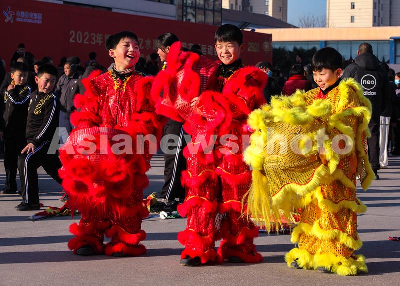 图片说明:1月31日,河南省焦作市博爱县体育馆,参赛的舞狮少年。