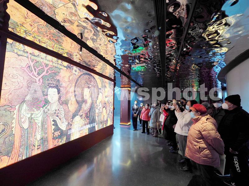 图片说明:2023年1月31日,观众在北京石景山区法海寺壁画艺术馆内参观。
