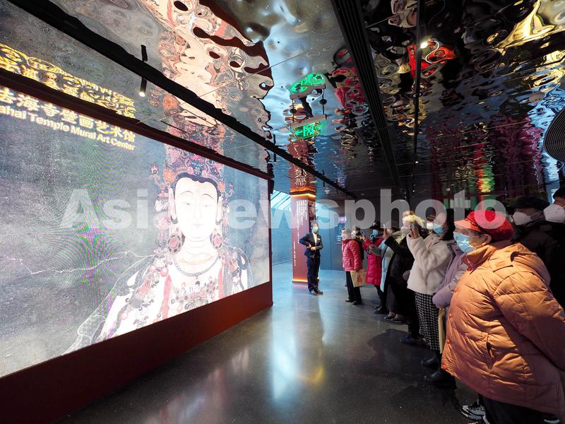 图片说明:2023年1月31日,观众在北京石景山区法海寺壁画艺术馆内参观。