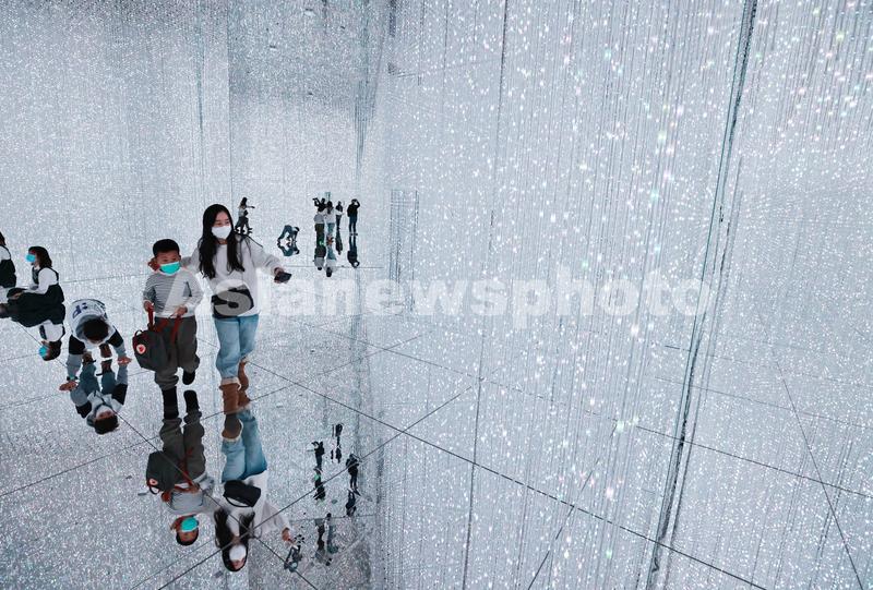 2023年2月1日,北京朝阳大悦城的无相艺术空间,观众在参观沉浸式数字艺术空间。