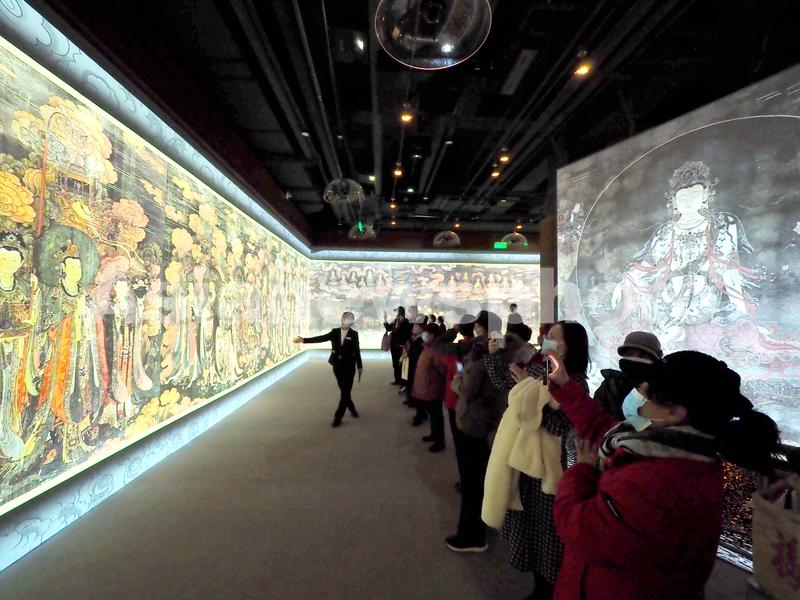 图片说明:2023年1月31日,观众在北京石景山区法海寺壁画艺术馆内参观。