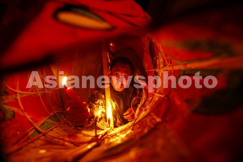 图片说明:2023年1月31日,在安徽省黄山市歙县,村民在为瞻淇鱼灯点上蜡烛。