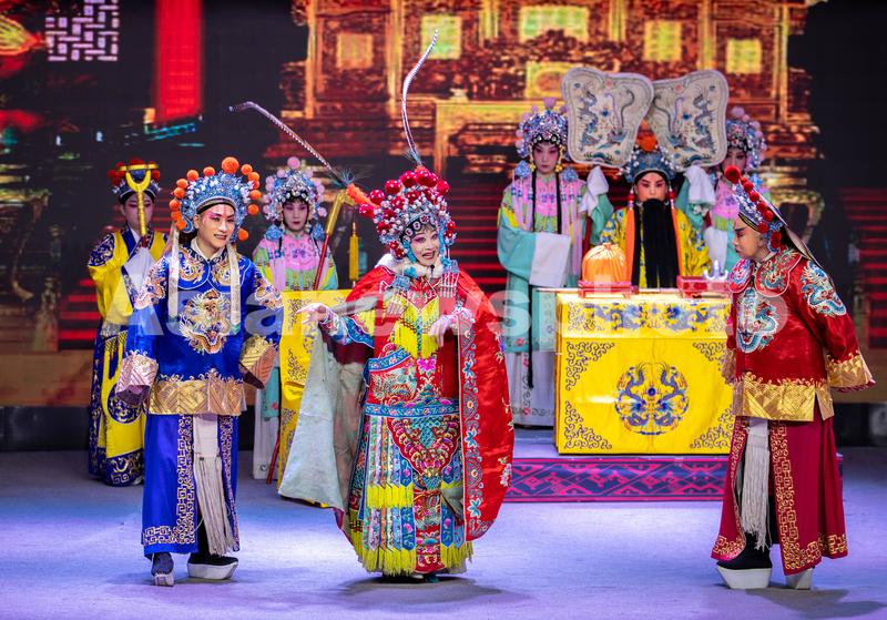 图片说明:2023年2月1日,演员在呼和浩特市玉泉区鸿雁剧场表演晋剧《算粮登殿》。
