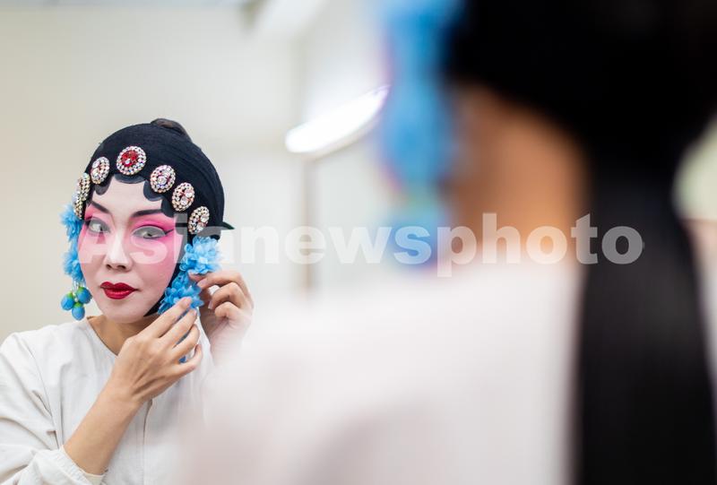 图片说明:2023年2月1日,呼和浩特市文化旅游投资集团晋剧院的演员在演出晋剧前化妆。
