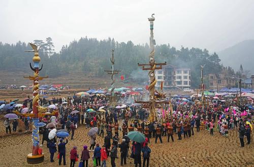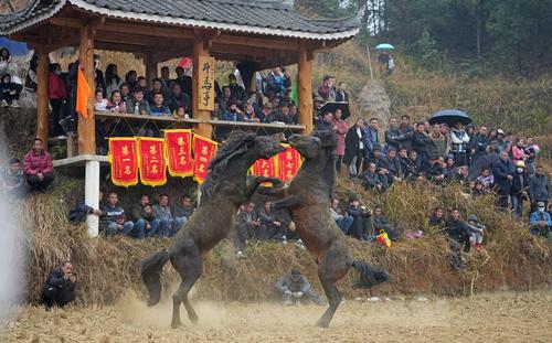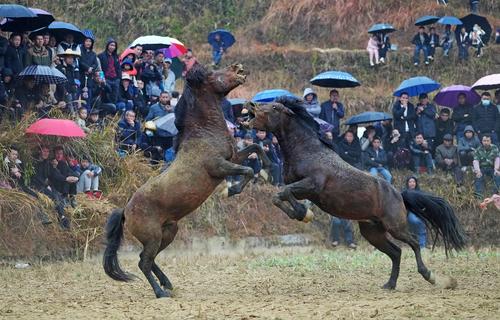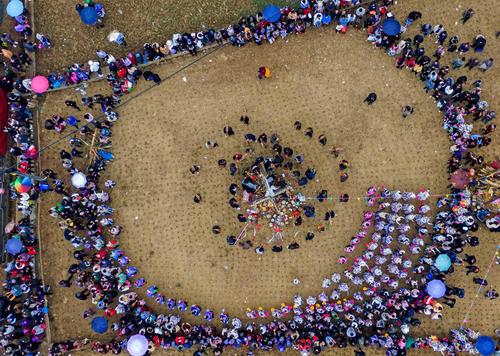 2023年2月1日,是广西柳州市融水苗族自治县安太乡元宝村正月十一坡会期,四乡八寨众乡亲汇聚一堂,开展芦笙踩堂、文艺表演和斗马等活动,喜闹新春,祈盼新年风调雨顺、五谷丰登。据了解,元宝村正月十一坡会是当地已列入第一批国家级非遗名录的“苗族系列坡会群”之一。