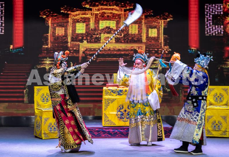 图片说明:2023年2月1日,演员在呼和浩特市玉泉区鸿雁剧场表演晋剧《算粮登殿》。