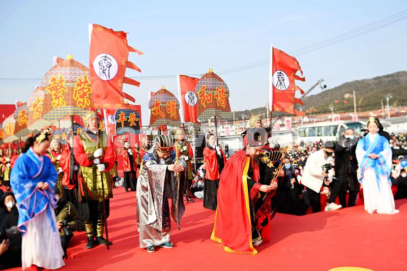 图片说明:2023年2月3日,山东省青岛西海岸新区琅琊镇台西头村祭海广场,祭海仪式进行中。