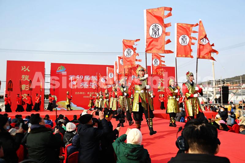 图片说明:2023年2月3日,山东省青岛西海岸新区琅琊镇台西头村祭海广场,祭海仪式进行中。