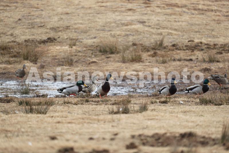 2023年2月2日,云南省昭通市昭阳区大山包镇大海子湿地栖息的赤麻鸭和斑头雁等珍稀禽类 。