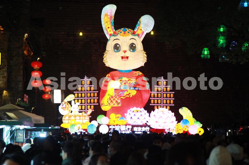 图片说明:2023年2月2日,江苏省南京市,游客在南京老门东景区观灯赏景。