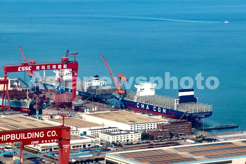 图片说明:2023年2月2日,山东青岛西海岸新区海西湾船舶海工产业基地生产作业有序。