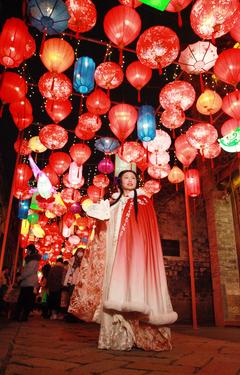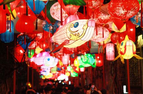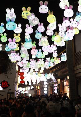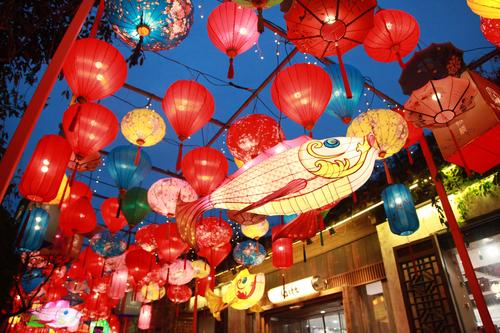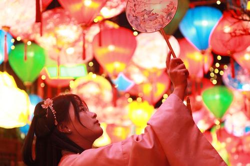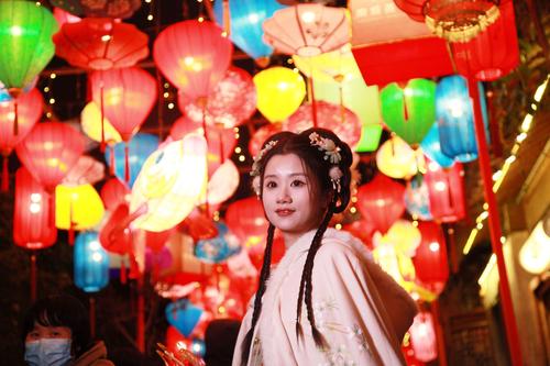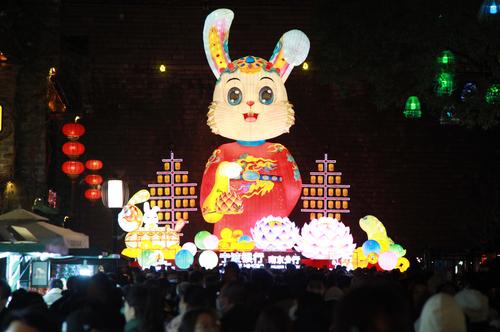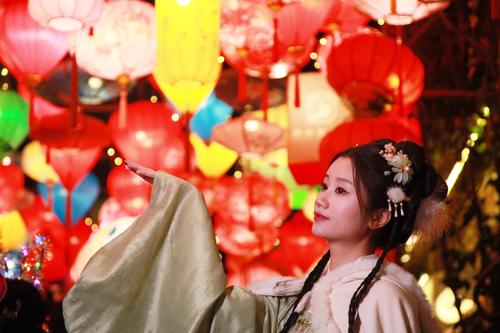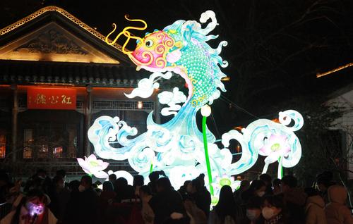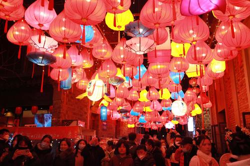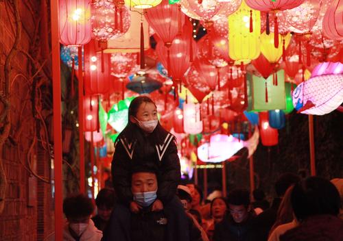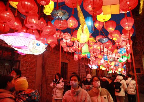 图片说明:2023年2月2日,江苏省南京市,游客在南京老门东景区观灯赏景。