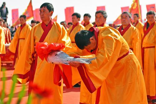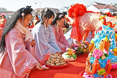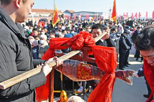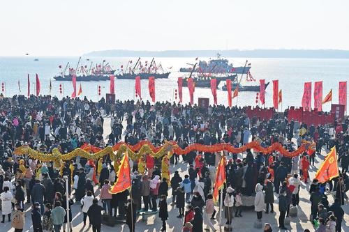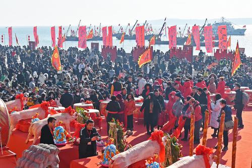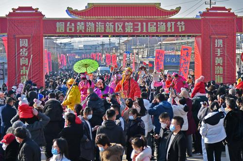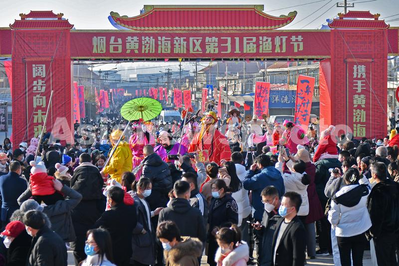 2023年2月4日,山东烟台黄渤海新区第31届渔灯节在大季家街道芦洋村渔灯文化广场举行。沿海渔民欢聚码头、敬献祭品,祈盼新的一年风调雨顺、渔业丰收。据介绍,渔灯节是当地传统民俗节日,距今已有500多年历史,2008年被列入国家级非物质文化遗产名录。
