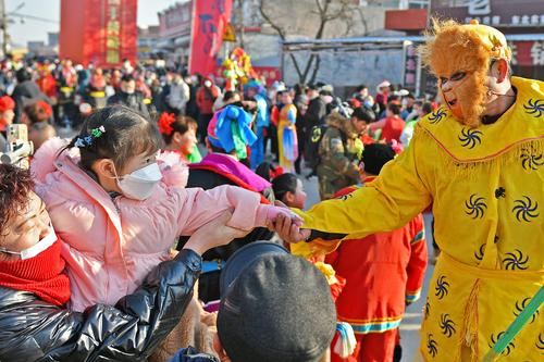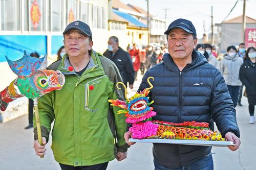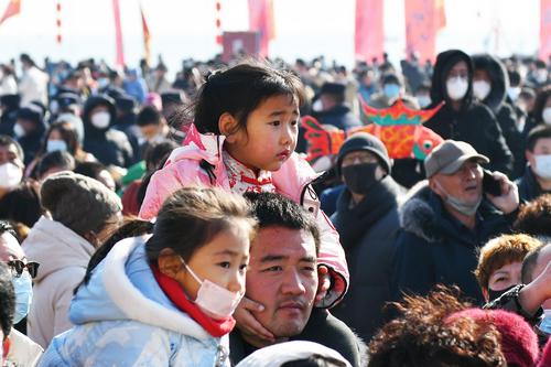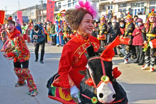 2023年2月4日,演员在烟台黄渤海新区渔灯节现场巡游表演。
