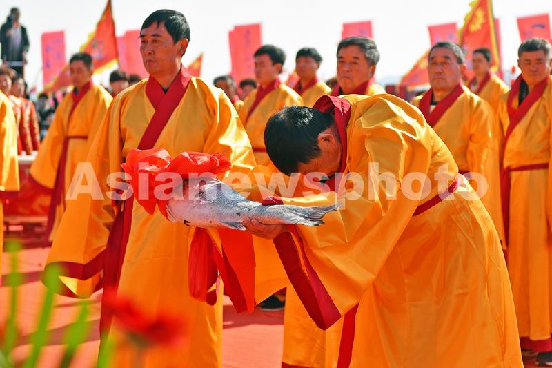 2023年2月4日,山东烟台黄渤海新区渔灯节祭海仪式现场。