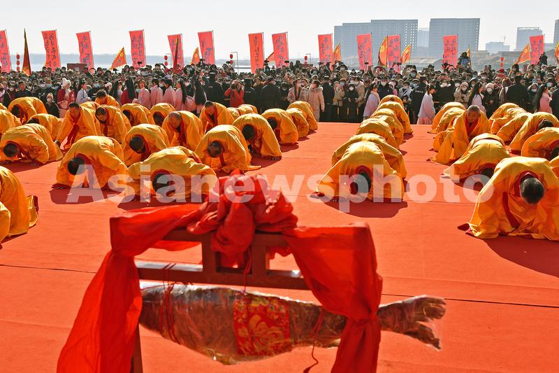 2023年2月4日,山东烟台黄渤海新区渔灯节祭海仪式现场。