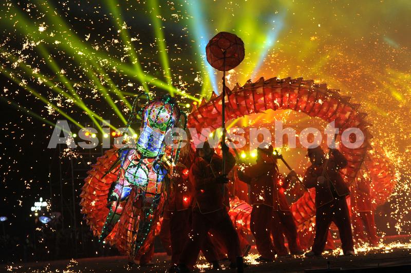 2023年2月4日,人们在贵州省台江县姊妹广场表演“舞龙嘘花”。