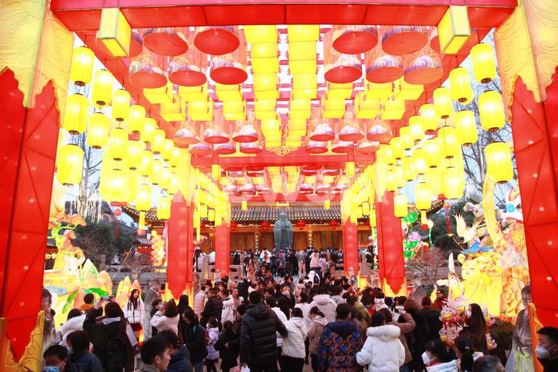 图片说明:2023年2月5日,江苏省南京市,游客在南京夫子庙景区赏灯观景。