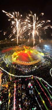 2023年2月4日,贵州台江县百龙齐聚县城,来自周边苗族村寨的舞龙队举行舞龙嘘花表演,欢度元宵节。据悉,“舞龙嘘花”是台江苗族同胞闹元宵的民间传统习俗。2021年,苗族“舞龙嘘花”习俗入选国家级非物质文化遗产名录。