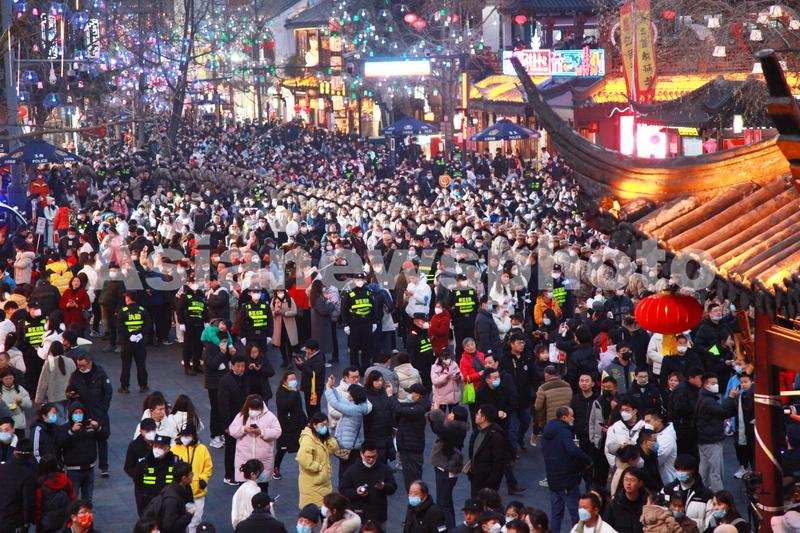 图片说明:2023年2月5日,江苏省南京市,游客在南京夫子庙景区赏灯观景。