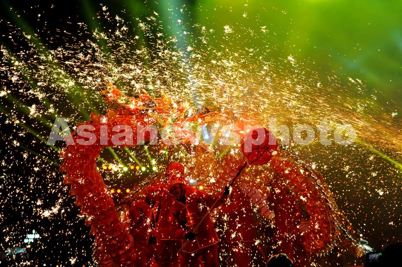 2023年2月4日,人们在贵州省台江县姊妹广场表演“舞龙嘘花”。