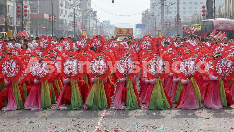 2023年2月5日,元宵节,山西省河津市举行“鱼跃龙门幸福河津”社火表演庆元宵,祝福舞蹈《福到人间》。