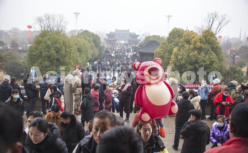 2023年2月6日,游人在安徽省滁州市全椒县参与“走太平”活动。