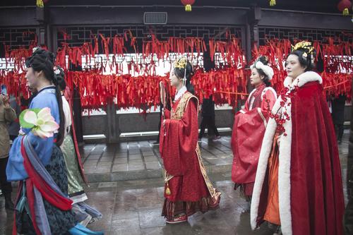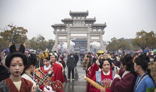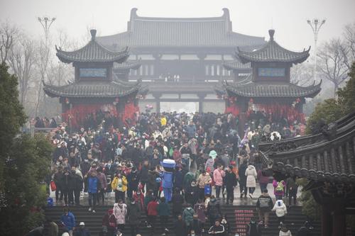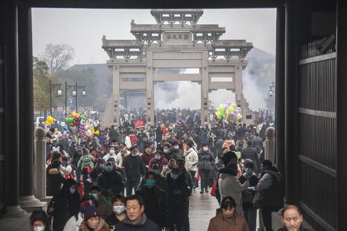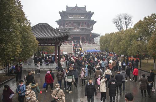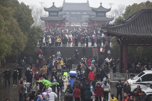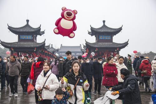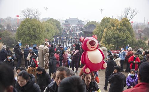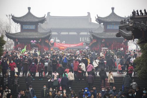 2023年2月6日,游人在安徽省滁州市全椒县参与“走太平”活动。