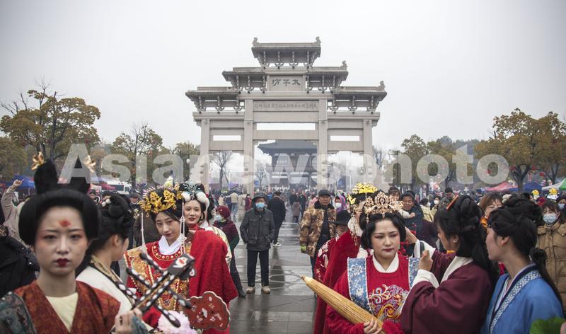 2023年2月6日,游人在安徽省滁州市全椒县参与“走太平”活动。