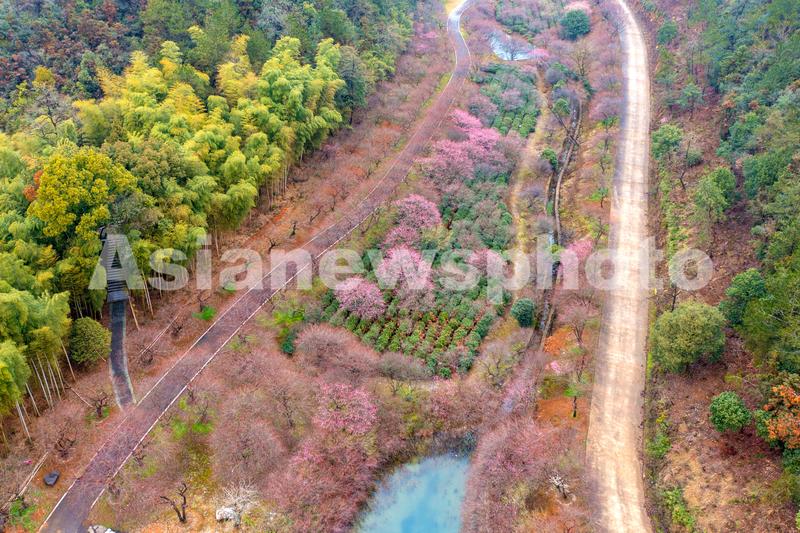 早春时节,2023年2月7日,浙江省湖州市长兴县龙山街道东方梅园,五颜六色的梅花争奇斗艳,在绿山青山的映衬下如美如画。春暖花开,大地斑斓,美丽乡村处处散发着春的气息。