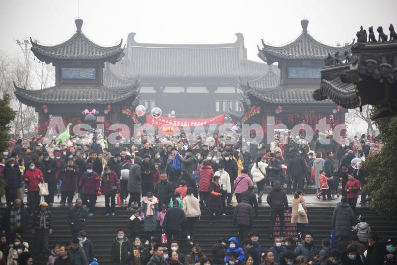 2023年2月6日,游人在安徽省滁州市全椒县参与“走太平”活动。