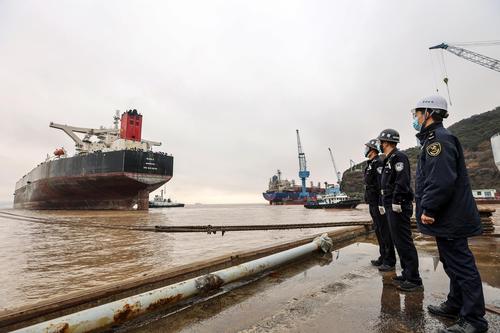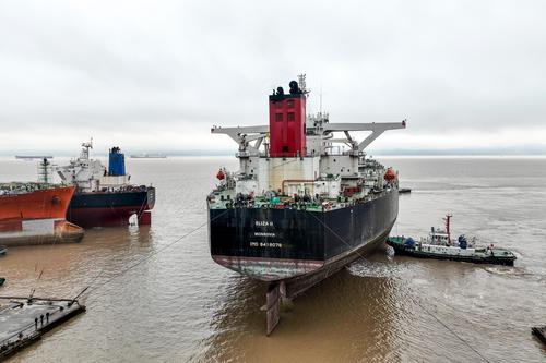 2023年2月7日上午,巴拿马籍的30万吨级“伊莉莎(ELIZA II)”油轮缓缓驶入浙江省舟山市鑫亚船厂1号船坞。计划在鑫亚船厂进行为期40天的常规坞修、脱硫塔改造等维修作业。