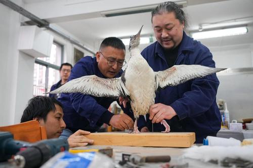 上海科技馆开展黑喉潜鸟标本制作 提升公众生态环保意识 查看组图