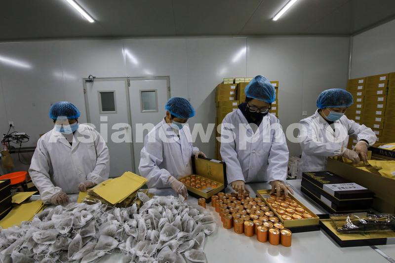 图片说明:2023年2月7日,工作人员在贵州省从江县贯洞镇铁皮石斛产业园包装石斛花产品。