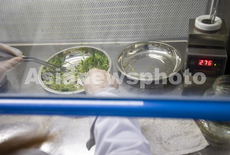 图片说明:2023年2月7日,工作人员在贵州省从江县贯洞镇铁皮石斛种苗繁育基地分割铁皮石斛幼苗。