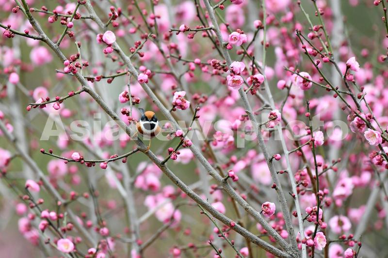 立春过后,贵州省仁怀市楠竹林公园的梅花相继盛开,红头长尾山雀在梅花枝头跳跃、小憩,灵动小鸟点缀骄艳梅花,构成一幅漂亮的梅雀争春图。