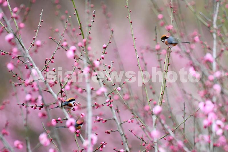 立春过后,贵州省仁怀市楠竹林公园的梅花相继盛开,红头长尾山雀在梅花枝头跳跃、小憩,灵动小鸟点缀骄艳梅花,构成一幅漂亮的梅雀争春图。