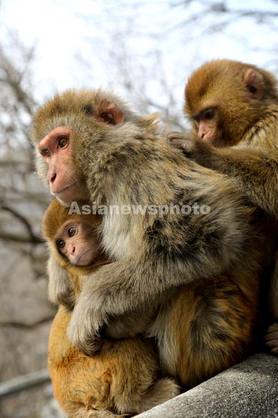2023年2月13日,在江苏省连云港市花果山上的猕猴。