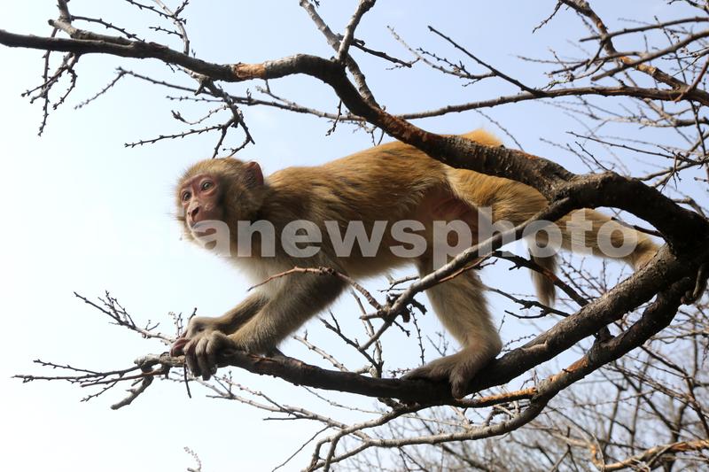 2023年2月13日,在江苏省连云港市花果山上的猕猴。